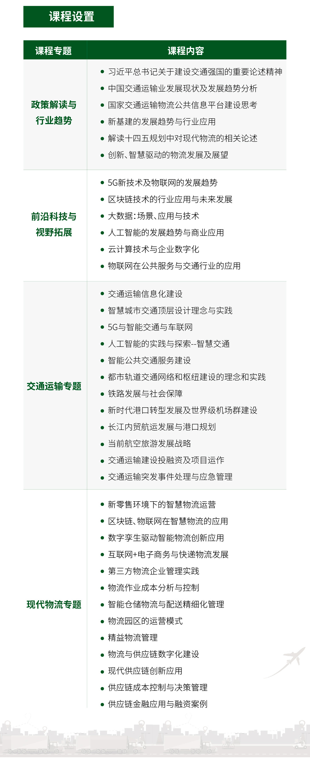 导航痕迹 首页 交通物流行业定制培训 企业培训 公开课项目 行业定制 数字化转型 国有企业定制培训 通用管理定制培训 高科技&互联网定制培训 智能制造定制培训 生物医药行业定制培训 金融行业定制培训 银行业定制培训 保险行业定制培训 能源环保行业定制培训 烟草行业定制培训 交通物流行业定制培训 房地产行业定制培训 建筑工程行业定制培训 金融定制 创业创新 学习卡 公共管理培训中心 大湾区科创中心 企业管理培训中心 医学教育培训中心 交通物流行业定制培训